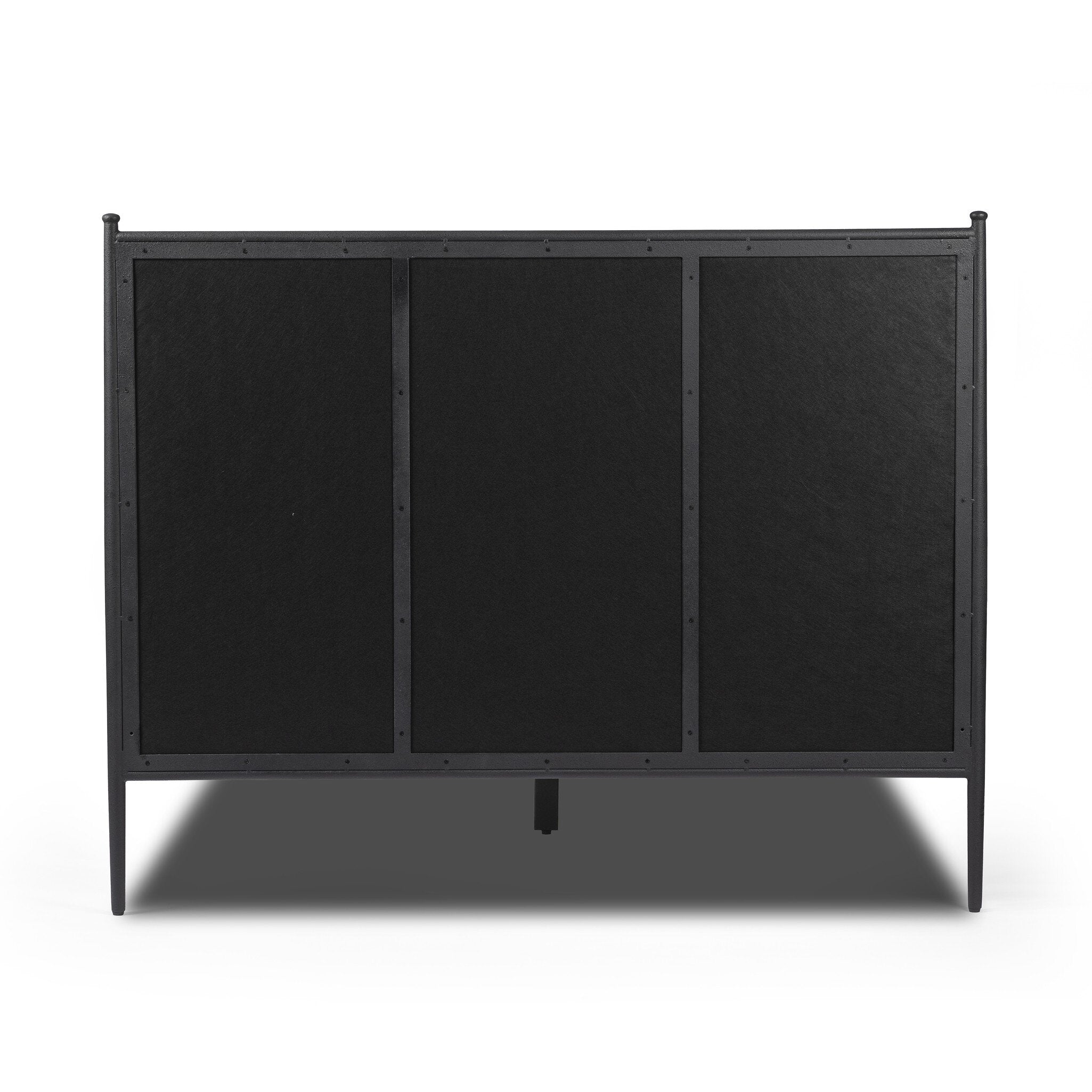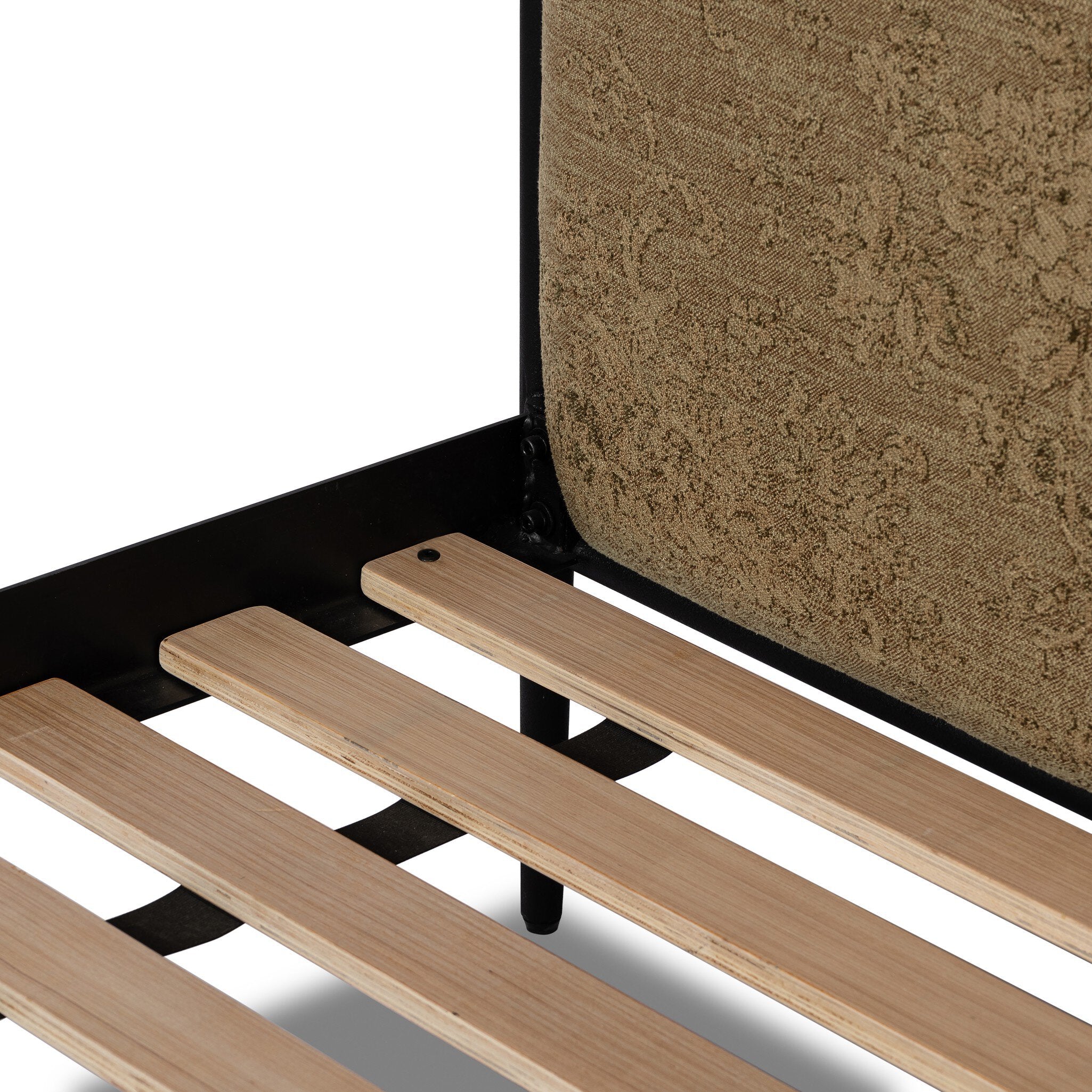 This striking bed frame combines industrial charm with refined elegance. The textured black iron construction provides sturdy support, while gracefully tapered legs finished with decorative ball accents add visual interest. The cream-upholstered headboard offers both comfort and versatility, seamlessly complementing any bedroom aesthetic from modern to traditional.