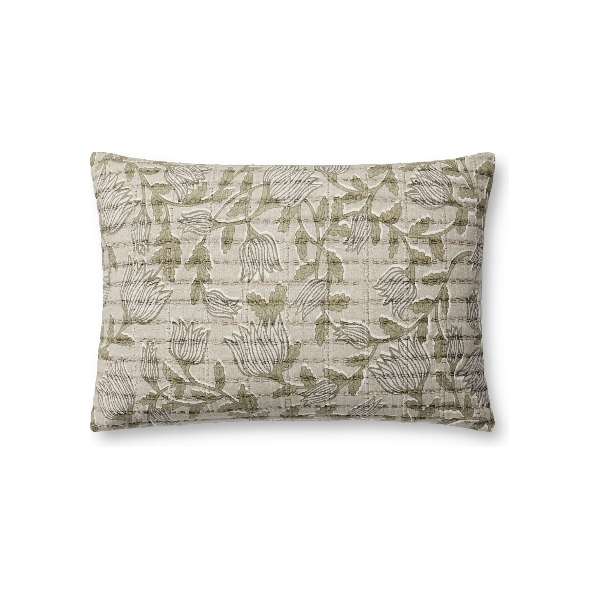 Make a statement with this throw pillow from Jean Stoffer x Loloi, designed to anchor your seating or bedding arrangements. Featuring a calming sage and ivory floral pattern with a gentle quilted finish, this cotton pillow's generous 16" x 26" dimensions provide impact and comfort, making it an ideal choice for creating visual depth in living rooms and bedrooms alike.