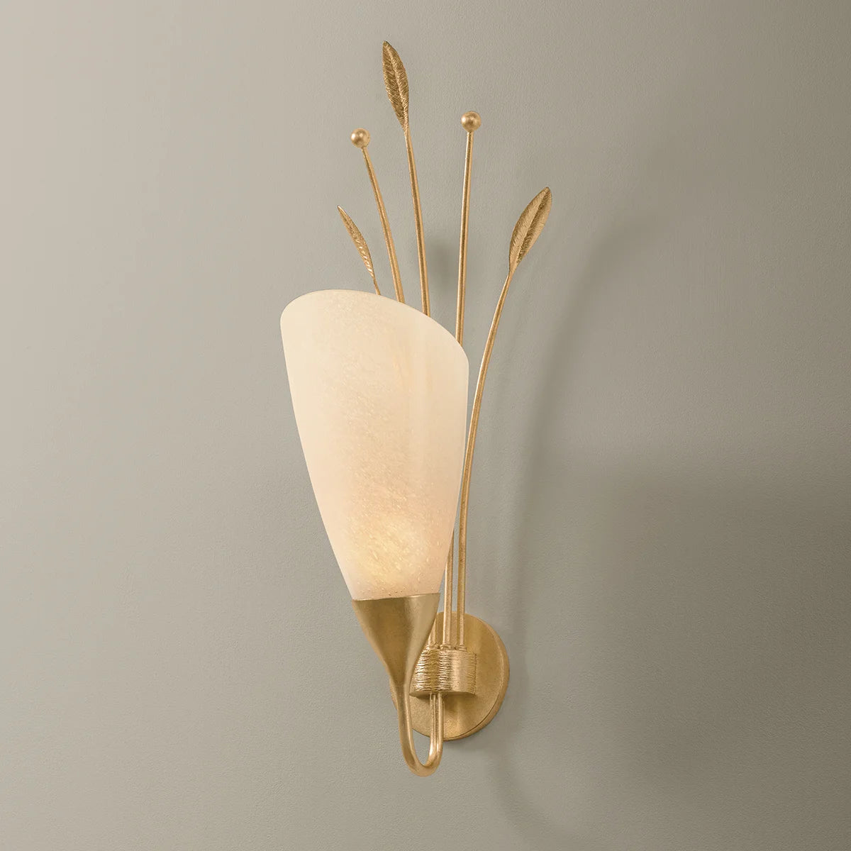 Bring nature-inspired elegance into your space with the Forest Glen wall sconce. Delicate cloud seedy glass shades frame a striking sculptural leaf cluster, creating an artistic focal point that celebrates organic beauty. The Vintage Gold Leaf finish is enriched with hand-etched veining details, adding depth and sophistication to every angle. A thoughtful design that transforms your walls into a gallery of natural wonder.