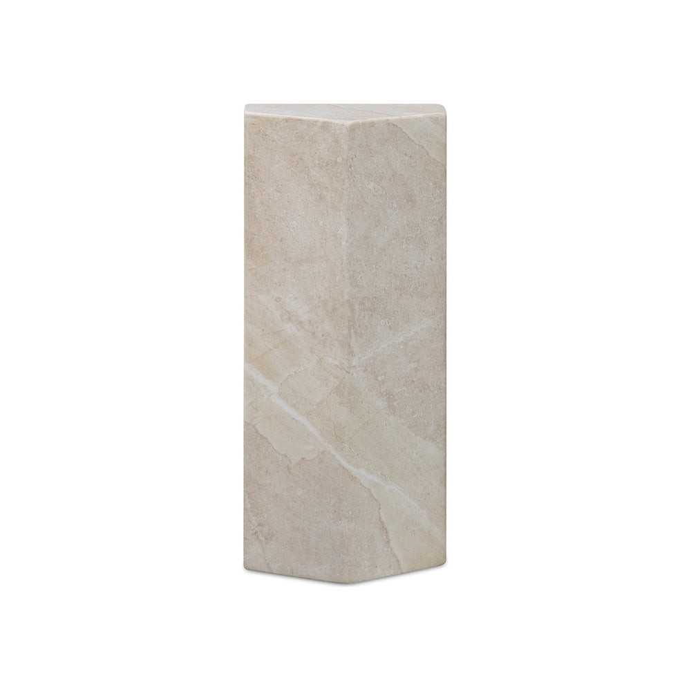 Knox Outdoor Side Table makes a bold statement with its distinctive five-sided form cast in durable concrete. Water-transfer finishing creates authentic marble-like veining unique to each piece, adding visual character and depth. Weather-resistant and versatile, this sculptural accent table works beautifully on patios or indoors—a striking piece that commands attention through expressive design.