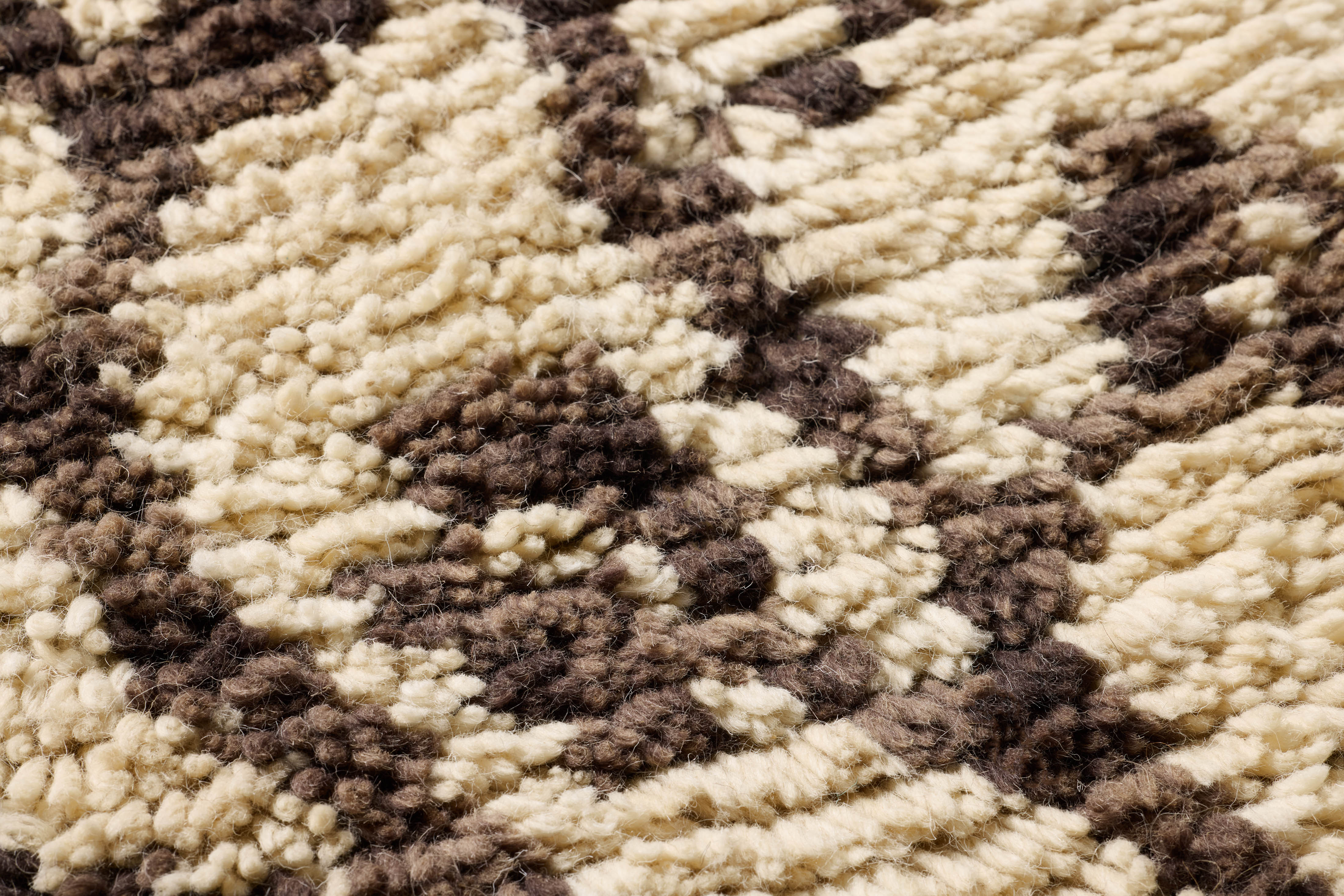 Handgetuftete Wandtapete aus Wolle, 127 x 66 cm, in Braun und Elfenbein mit Eukalyptus-Motiv. Die reiche Textur passt hervorragend zu Einrichtungen im Bohème- und Naturstil. Hergestellt in Indien, gerahmt in den USA und fertig zum Aufhängen.
