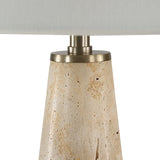 Highlighting the distinctive swirls and textures of travertine, this stone and linen table lamp introduces a refined natural elegance to your room. Ideal for enhancing modern or transitional decor, its sleek design and soft neutral tones offer understated sophistication. Position it beside a reading nook or on a console table to create an inviting atmosphere instantly.