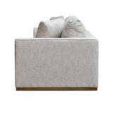 This sofa offers a perfect spot for hosting visitors or unwinding with a warm drink on a cool day. Crafted from woven liven fabric in a contemporary off-white shade, it combines understated elegance with designed-for-comfort features.