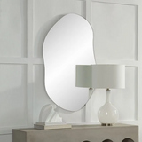 Upgrade your home decor with the Angelonia Irregular Rectangular Oval Mirror. The abstract-shape design adds a modern flair to any room, creating an interesting focal point. Its tall, elongated shape provides a full-length reflection that's perfect for getting ready in the morning, while its irregular oval design adds a unique touch to any space. With a ring hanging system, installation is a breeze, and the four-way hanging options provide versatile display possibilities. Its sturdy construction and versatile design makes this mirror a must-have for anyone looking to add a touch of sophistication and style to their home decor.