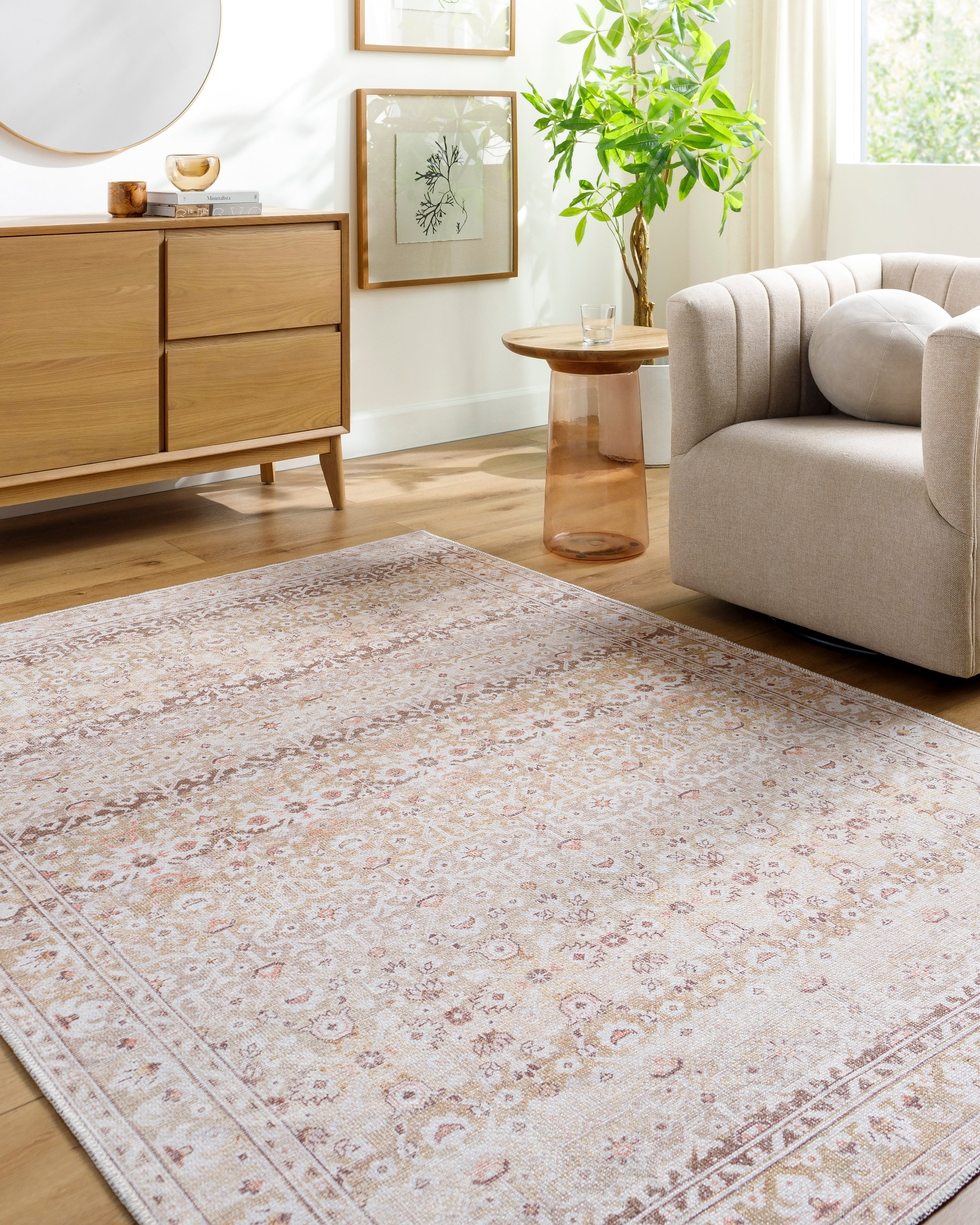 The Aria Washable Rug collection elevates your living space with its harmonious blend of soothing hues. Crafted by skilled artisans in Turkey using quality chenille-polyester materials, this refined rug seamlessly merges classic design with contemporary convenience. The thoughtful low pile construction withstands busy household areas without sacrificing comfort. Cleaning is effortless—simply machine wash on cold delicate cycle and air dry. We suggest adding a rug pad underneath for optimal performance. Experience the Aria rug's perfect combination of sophisticated style and practical durability in your home.
