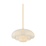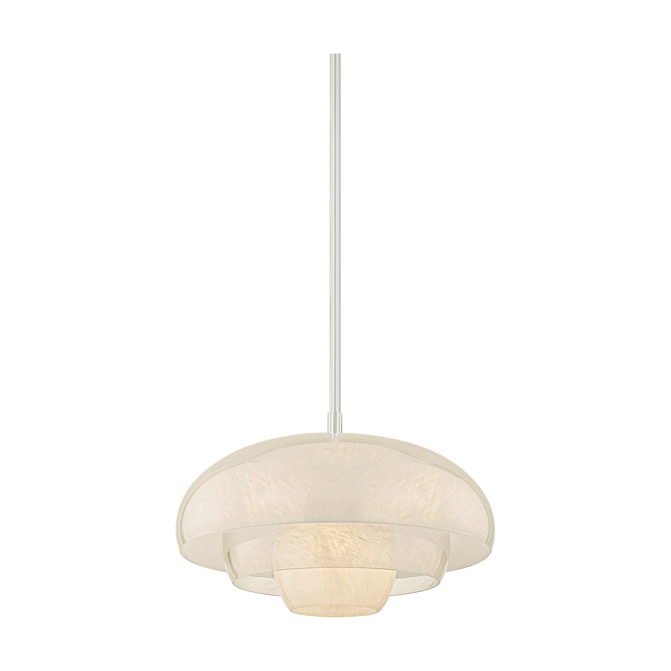 Three nested mushroom shades create the voluminous silhouette of the Auburndale pendant. The layering of clear cloud glass provides levels of ethereal diffusion, softening the light for a more gentle, ambient glow. The metal stem is available in two finishes: Aged Brass for a warm, classic look or Polished Nickel for a more contemporary feel.