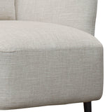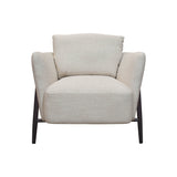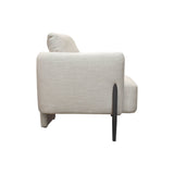 Experience refined comfort with this chair, upholstered in a neutral-toned fabric. Its elegant front metal legs integrate smoothly with the frame, offering a streamlined and unified design.