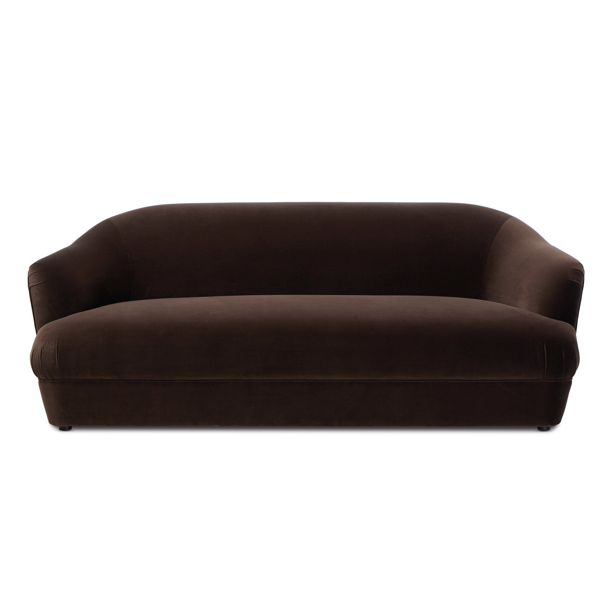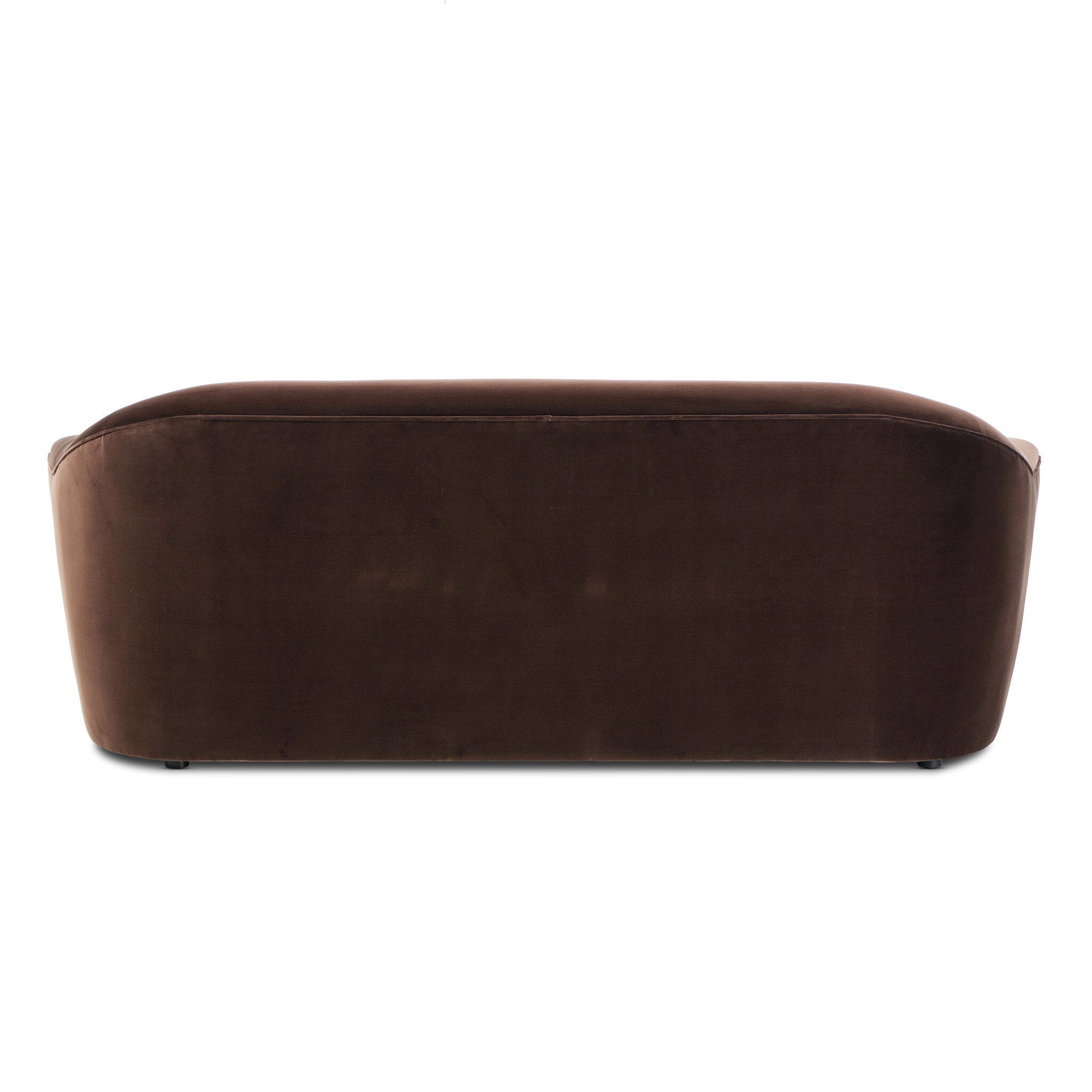 This 85" sofa bridges contemporary and classic aesthetics through thoughtful design. Generous T-cushion seating paired with gracefully curved armrests creates inviting comfort, while the sumptuous cocoa velvet upholstery and refined frame deliver understated elegance to sophisticated living spaces.