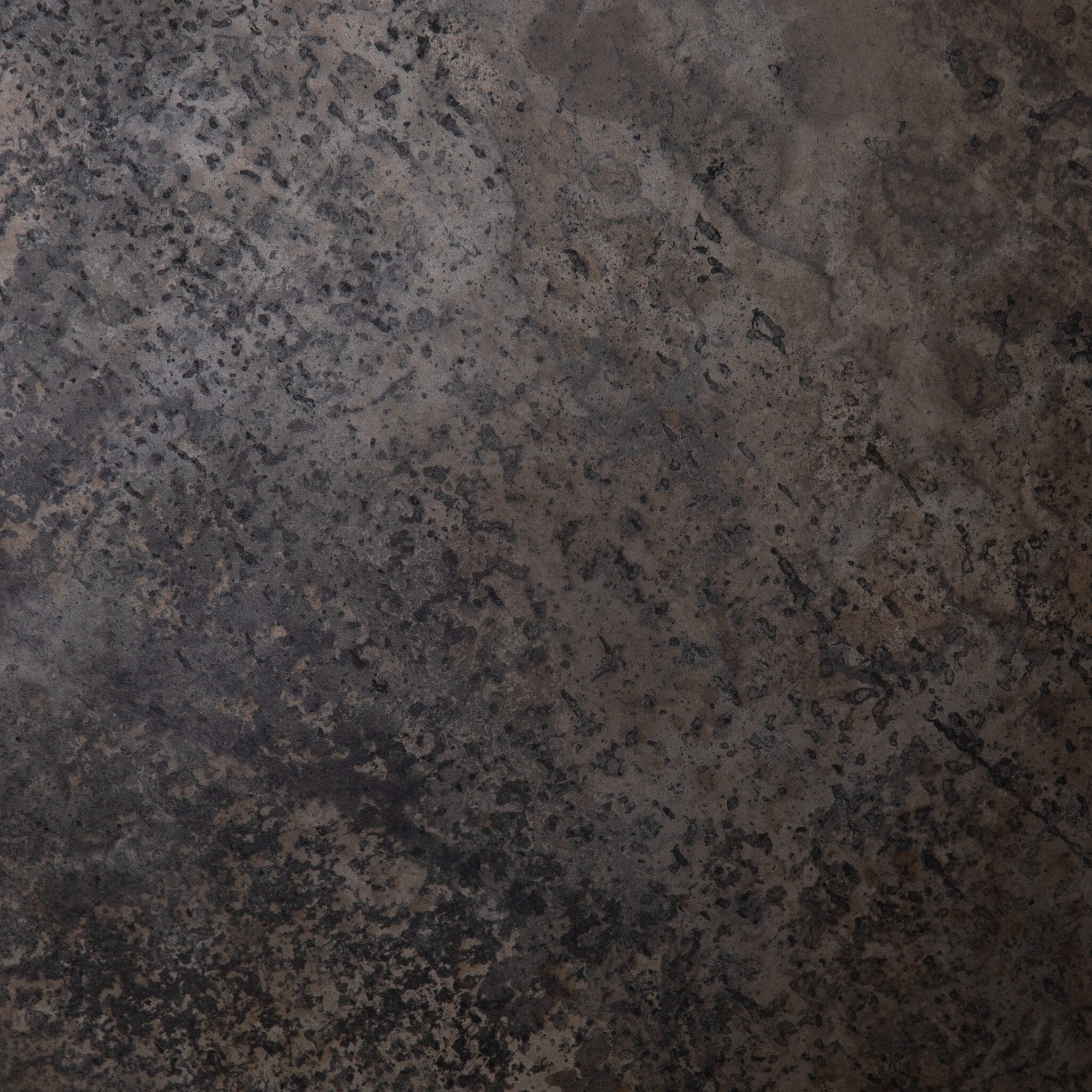 This unique end table features a distressed iron tabletop that sits on a rustic oak base. The sculptural design adds an organic feel and the oak's natural variations bring character to the piece.
