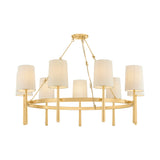 Combining soft materiality and refined form language, the Bridgeton family blends into both modern and classic interiors. Natural silk shades add depth and richness by adding texture to the framework. While the sconce is minimal and timeless, the two sizes of chandelier feature a unique twist on a ring silhouette. Finished in Aged Brass, the delicate suspension includes loops that attach to hooks on the canopy, highlighting the fine craftsmanship behind this design.