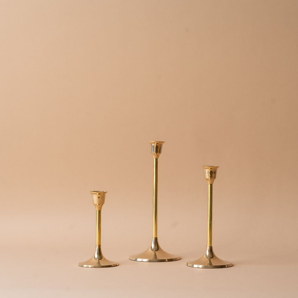 Designed to elevate your dining tables, shelves, and living spaces, these taper holders bring elegance to your home. Their sophisticated brass sheen complements existing decor while creating a warm, inviting atmosphere.