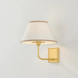 A vintage-inspired silhouette is elevated through thoughtful details in this transitional family. Arranged at varying heights, the overscale white linen tapered shades create a voluminous effect, like a sail billowing in the wind. Ivory trim provides subtle visual interest while remaining fresh and neutral. The frame is finished in Aged Brass with rounded right angles that keep the design feeling soft. Available as a sconce or chandelier in two sizes.