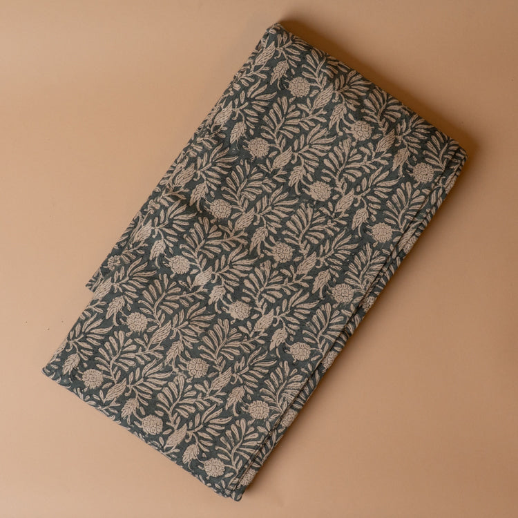 This Earthy Botanicals Block Print Tablecloth features a harmonious blend of warm blue and earthy beige tones, crafted with traditional block printing techniques. Each tablecloth presents detailed botanical patterns and organic motifs that evoke artisanal craftsmanship and a natural aesthetic.