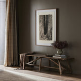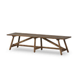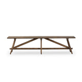 Experience the timeless charm of a family heirloom with this Wabi Sabi-inspired accent bench. The burnt bleached oak, trellis base, wide-planked top, and natural cracks and graining all add to its artisanal, found-feeling quality.