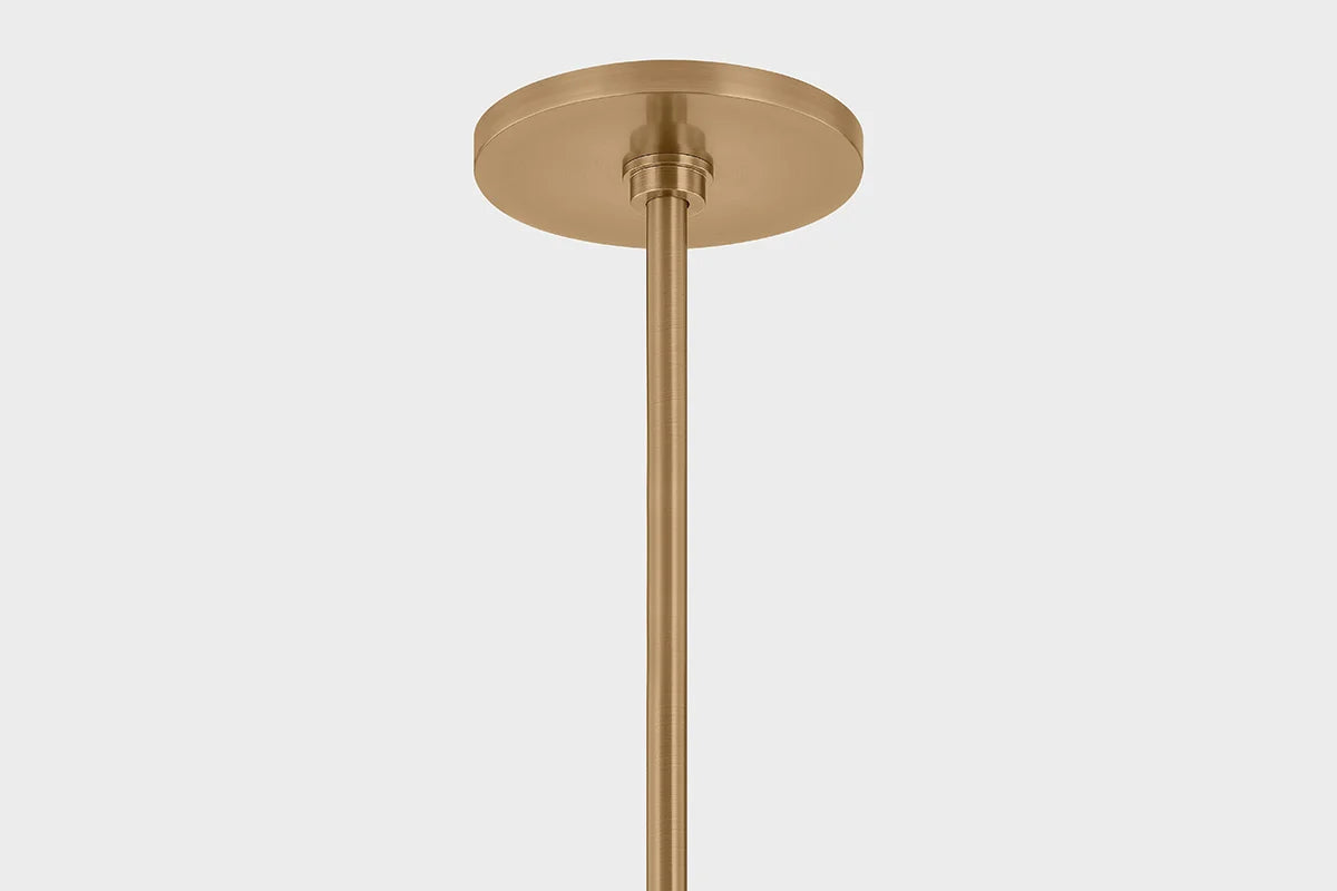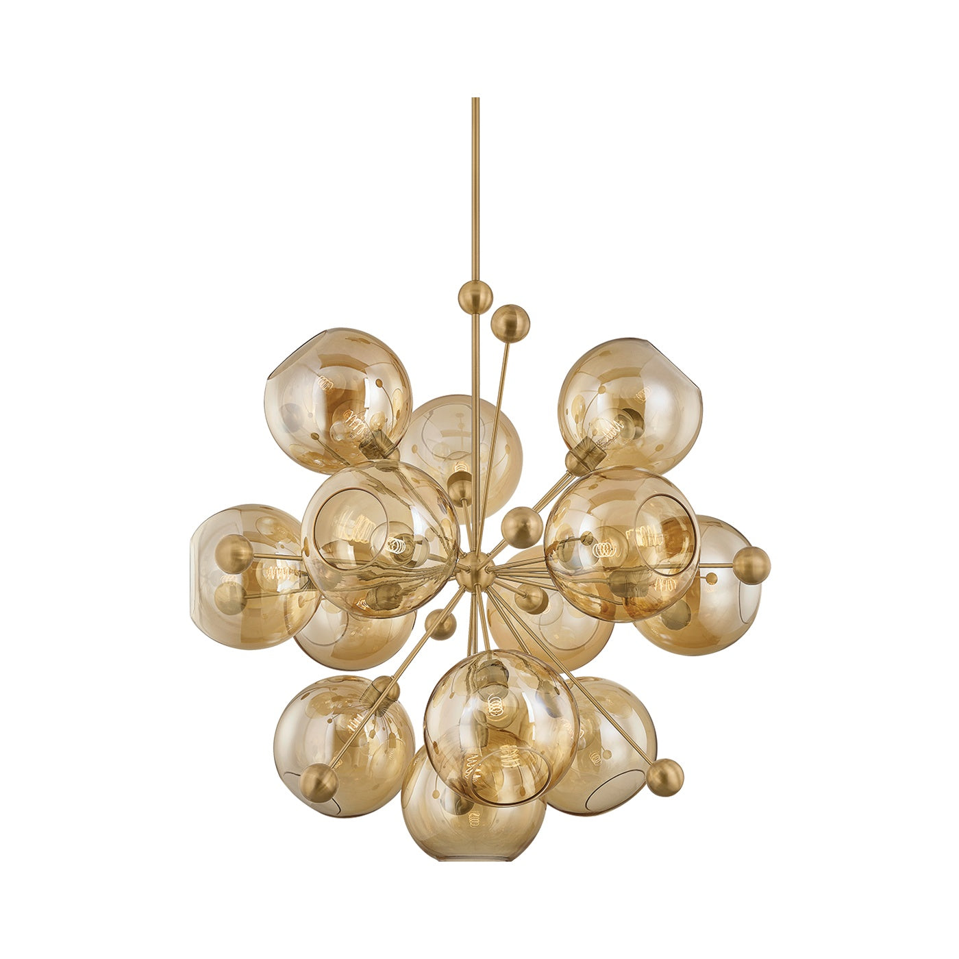 Inspired by the vibrant spirit of mid-century modern design, the Ellory chandelier reinterprets the classic Sputnik form with distinctive specialty glass. It showcases a striking arrangement of light bronze glass shades radiating from a Patina Brass frame, enhanced by smaller decorative metal spheres that add flair to the bold composition. Offered in two sizes, Ellory commands attention in any setting.