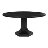 The Emrys dining table combines geometric accuracy with smooth elegance. Its solid tabletop is supported by a hexagonal base featuring softly curved sides, forming a seamless silhouette that balances durability with refined style. Made entirely of cast iron and finished in rich black, this elegant piece serves as a sophisticated centerpiece.