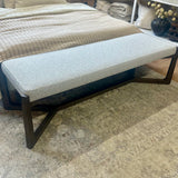 Ideal in an entryway, dining area or at the foot of the bed, an airy, cross-base beechwood frame supports textural bench-style seating, upholstered in a performance-grade fabric exclusive to Four Hands.