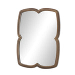 Crafted from premium solid oak with iron accents, this mirror features a distinctive petal-shaped frame that draws inspiration from botanical forms. Bullnose edge treatment provides refined finishing throughout, creating a sophisticated piece that combines natural wood warmth with architectural precision.
