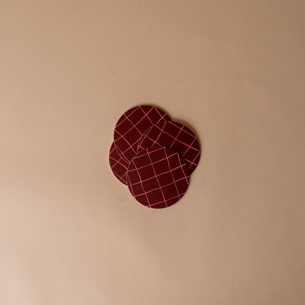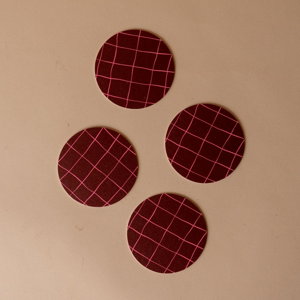 Add a touch of modernity to your table with our Grid Pattern Coaster Set. Featuring a dark red windowpane design, these coasters offer a soft, minimalist vibe that will elevate any gathering.