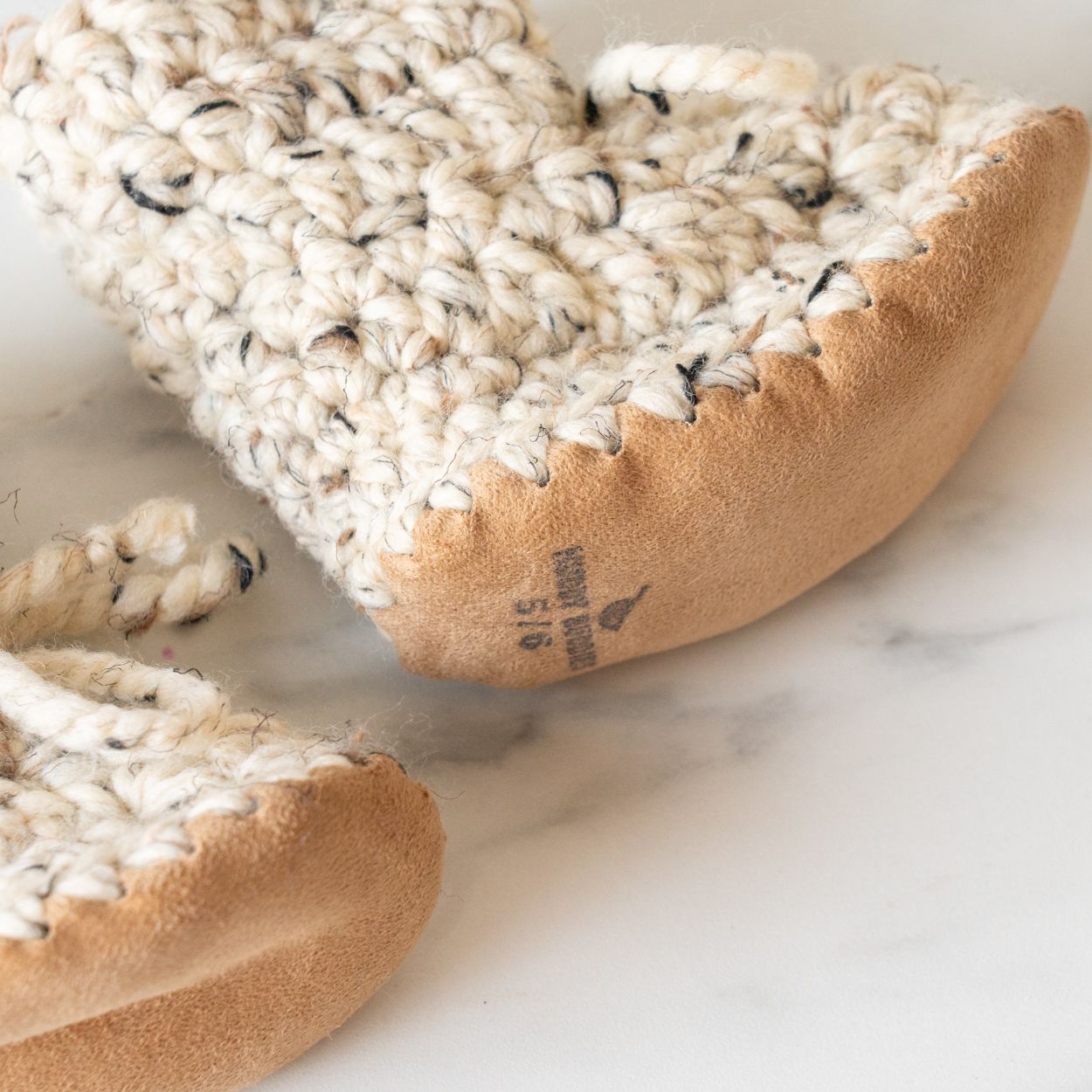 These soft and cozy hand-crocheted booties are perfect for your little ones feet, both indoor and outdoor, and easy to slip on. Soft soles are great for allowing healthy foot development and promoting balance and coordination for early walkers!