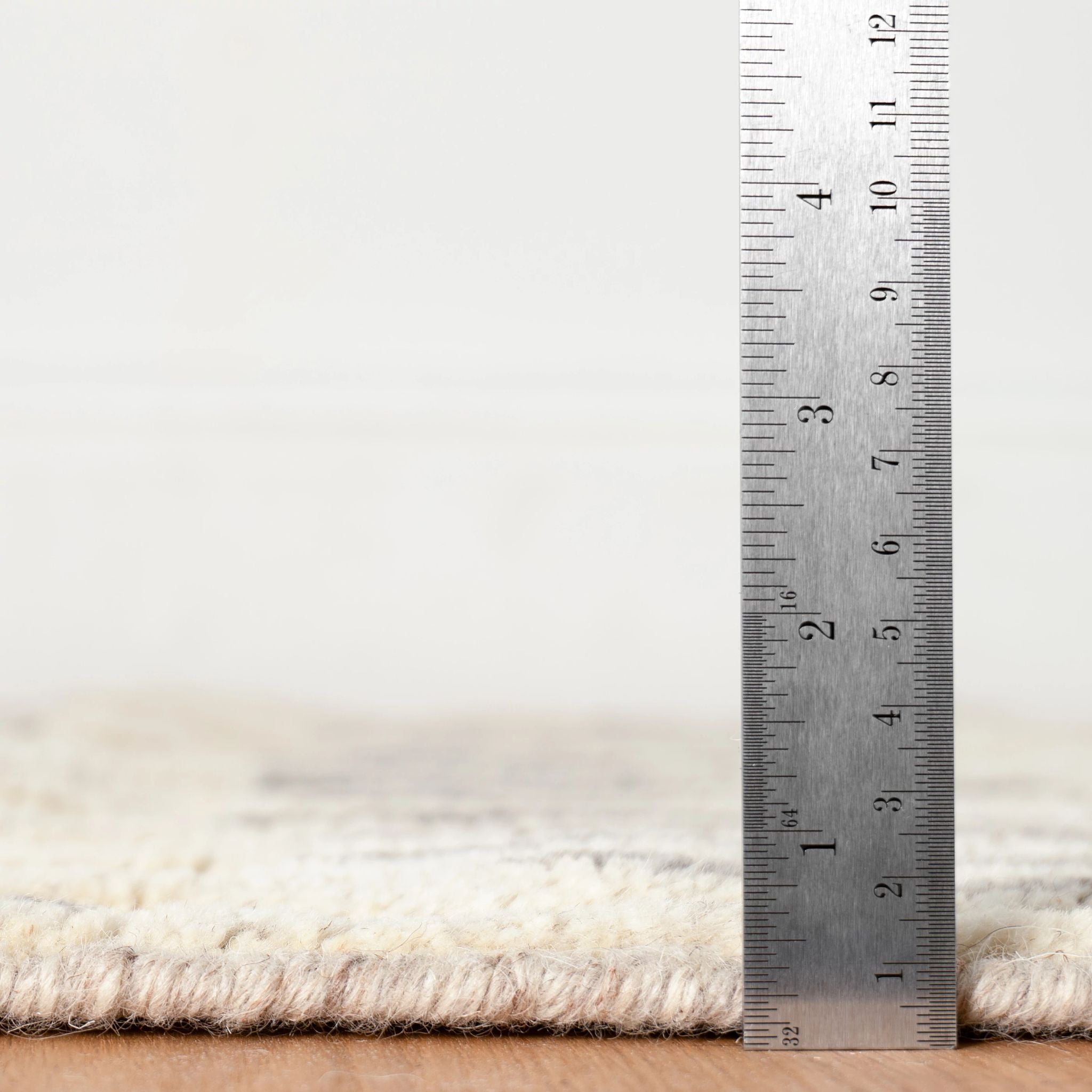 Hand-knotted wool rug with natural, undyed fibers and abstract tonal pattern. High-low texture created through hand shearing delivers luxurious softness underfoot, while the artisanal construction ensures each piece is uniquely individual.