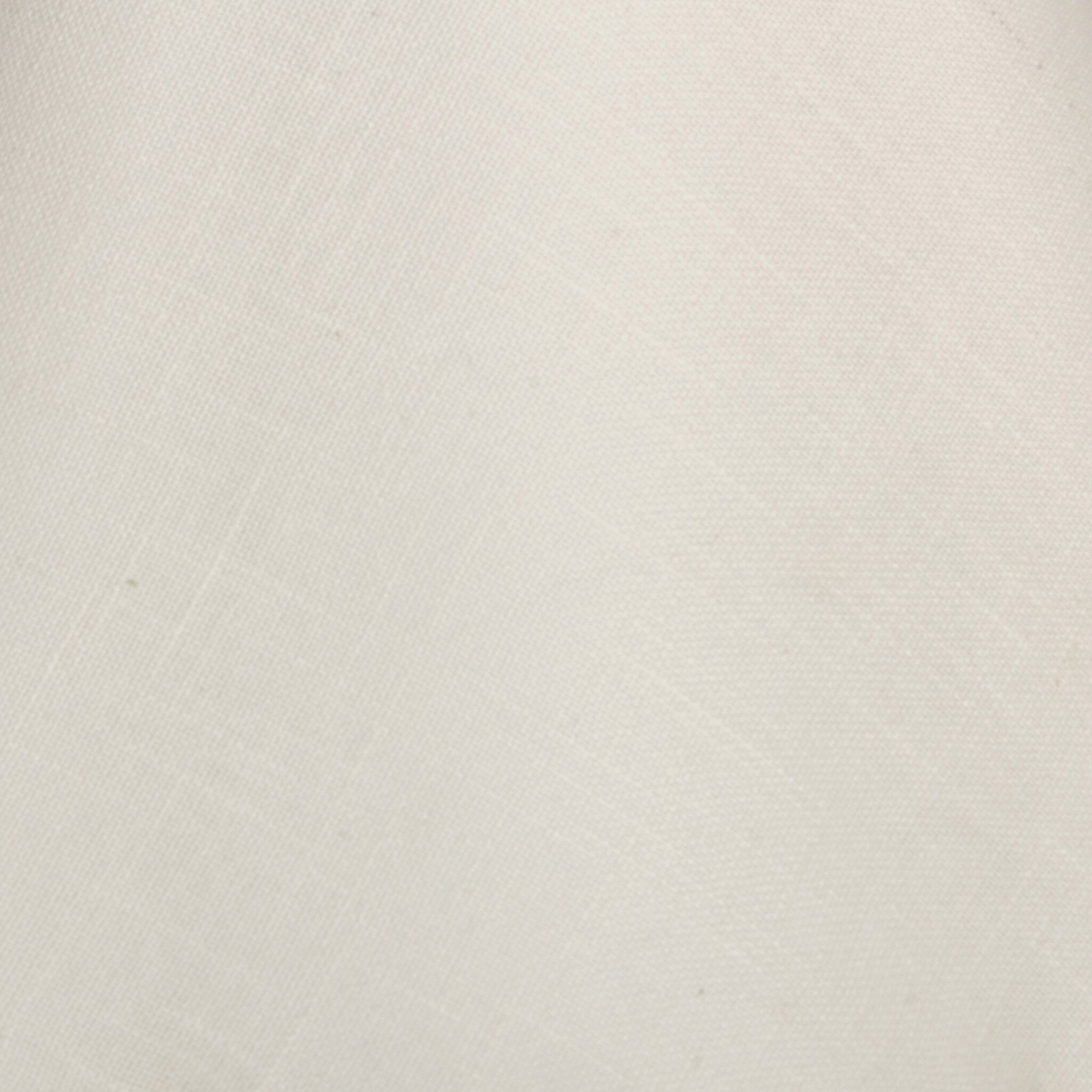 Slim in style, crisp with contrast. A black wrought iron base supports a cream-colored linen shade with scallop detailing.