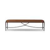 Embrace Art Deco elegance with this bench featuring a curved stretcher base crafted from bronzed hammered iron and a plush seat in a versatile earth tone. Ideal for the bedroom, entryway, or living area, it provides additional surface space or seating. Upholstered in Crypton® performance fabric, it offers softness alongside stain, moisture, and odor resistance, all while being free of PFAS for a safer, cleaner experience.
