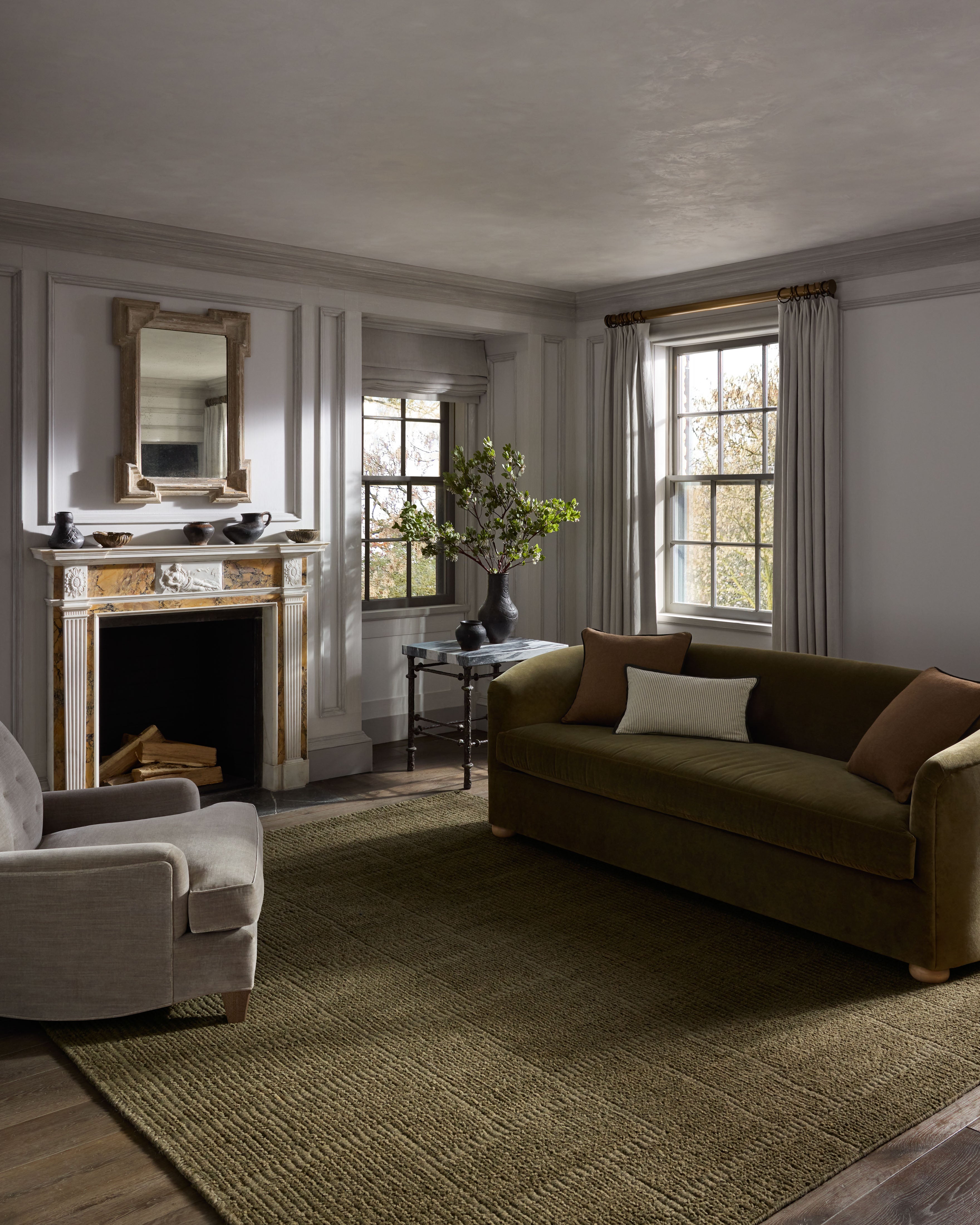 The Greenwich Collection by Jeremiah Brent x Loloi is a beautifully textured solid-toned area rug with subtle pile variation. Jeremiah loves this collection for its rich colors rooted in nature and a blended wool-and-cotton pile that's softer and more malleable than typical wool. This collection is hand-woven in India and Goodweave-certified, ensuring our commitment to ethical production and the support of weavers communities.