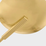 The Johnson family gives a modernist silhouette an industrial twist. Reminiscent of spokes, the slender arms of this chandelier and flush mount support shallow dome shades that direct LED light upwards. Each arm features a subtle linear knurl at the ends, while the center stem is grooved at the bottom for added texture. Finished in Aged Brass.