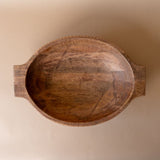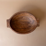 Crafted from stained mango wood and inspired by vintage shapes, these Dough Bowls are both decorative and functional. They can serve as eye-catching accents for shelves or coffee tables, and also be utilized as serving vessels for salads or fruit bowls on the countertop. They have been deemed food safe and it is recommended to hand wash them.