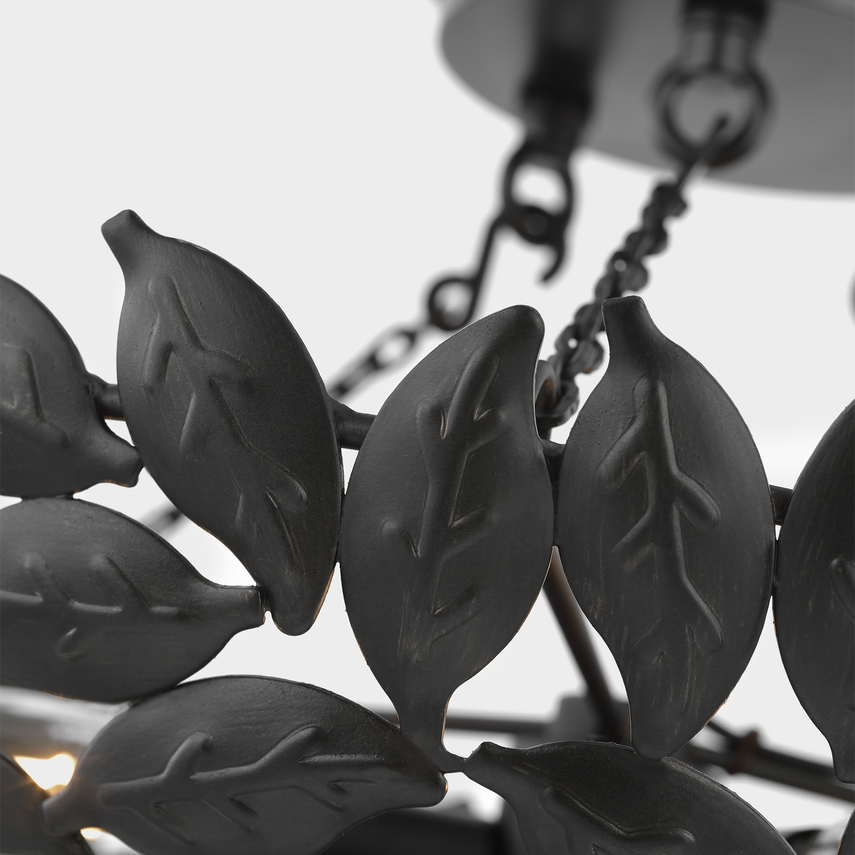 This luminous chandelier features delicately shaped motif leaves, offering a timeless design that effortlessly enhances any space with a refined, classic charm.
