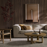 Experience the natural beauty and durability of the Luella Coffee Table. Crafted from solid nettlewood, its open cross-style base supports a thick, rounded tabletop finished with a soft touch. Elevate your living space with this unique and stylish addition.