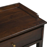 Dust regularly with a soft, dry cloth and clean spills immediately with a lightly dampened cloth. Use a mild soap solution for deeper cleaning, avoiding harsh chemicals. Keep the nightstand away from moisture and direct sunlight to prevent warping and fading. Always handle drawers gently and avoid overloading them. For the brass handle, wipe with a soft cloth.