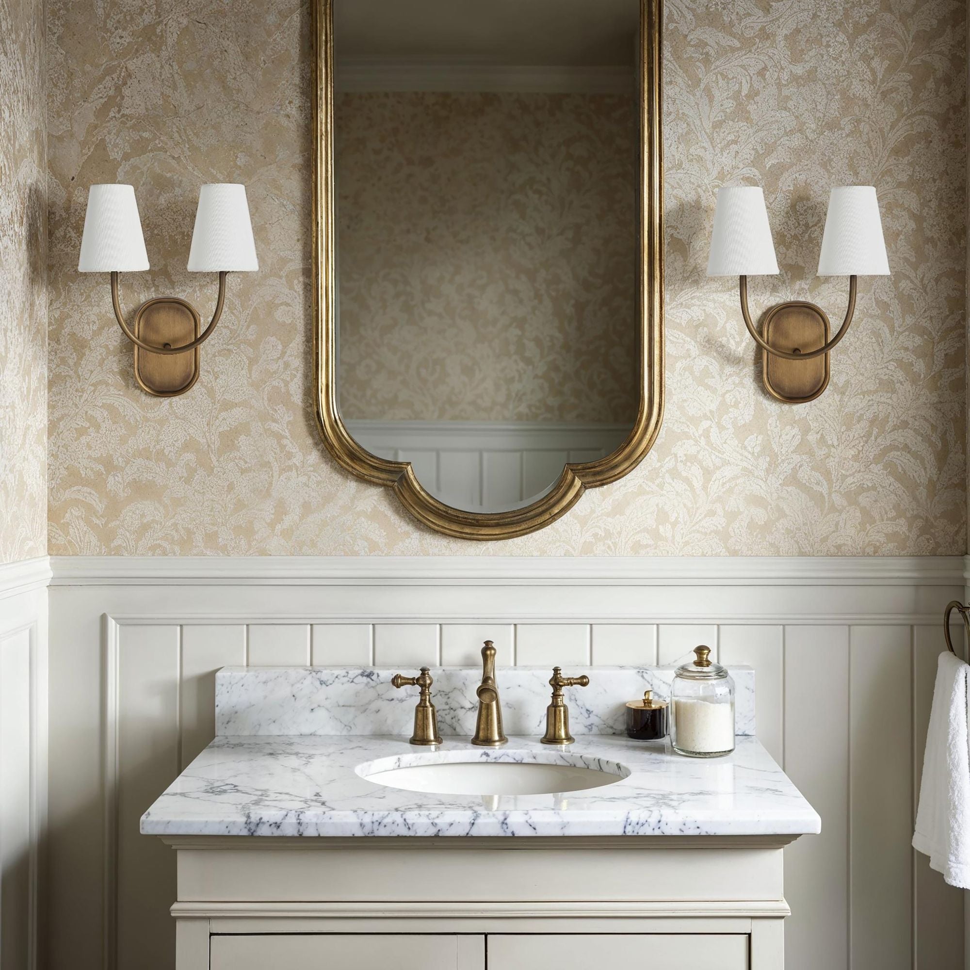 Elevate your décor with the warm ambiance of the Marlie Wall Sconce. Designed with a transitional aesthetic, this two-light fixture features a sophisticated dark antique brushed brass-plated body paired elegantly with ivory linen tapered shades. Perfect for adding depth and layered illumination, the Marlie effortlessly fills any room with inviting warmth and refined style.