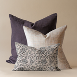 Introducing a brand new combo, built of some of our best selling covers, sure to fit into any decor space! A mix of solids, stripes and florals is an easy way to create a layered look when it comes to pillow styling. This grouping provides a moody anchor, a multi coloured grid, and a charming floral. Easily style this contemporary yet timeless combo in your home today!