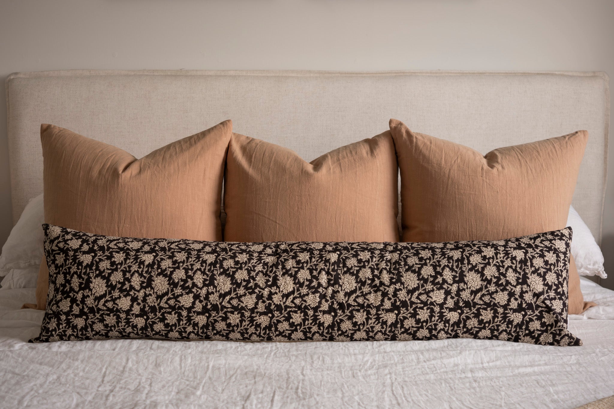 We are thrilled to introduce a capsule collection of long lumbar pillow covers, specifically designed for your bed. We have selected some of our favourite and best selling fabrics to create this luxurious addition to your bedroom space. Anchor with a couple large square pillows behind to create a designer styled bed!