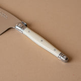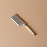 The Mini Cleaver with Ivory Handle is crafted from high-quality stainless steel and features a stunning bee motif on its ivory handle, a tribute to the Napoleonic Empire. Every knife undergoes a thorough production process, including cutting, heat treatment, grinding, polishing, and sharpening. This versatile cleaver is ideal for both kitchen use and serving as a cheese knife at gatherings.