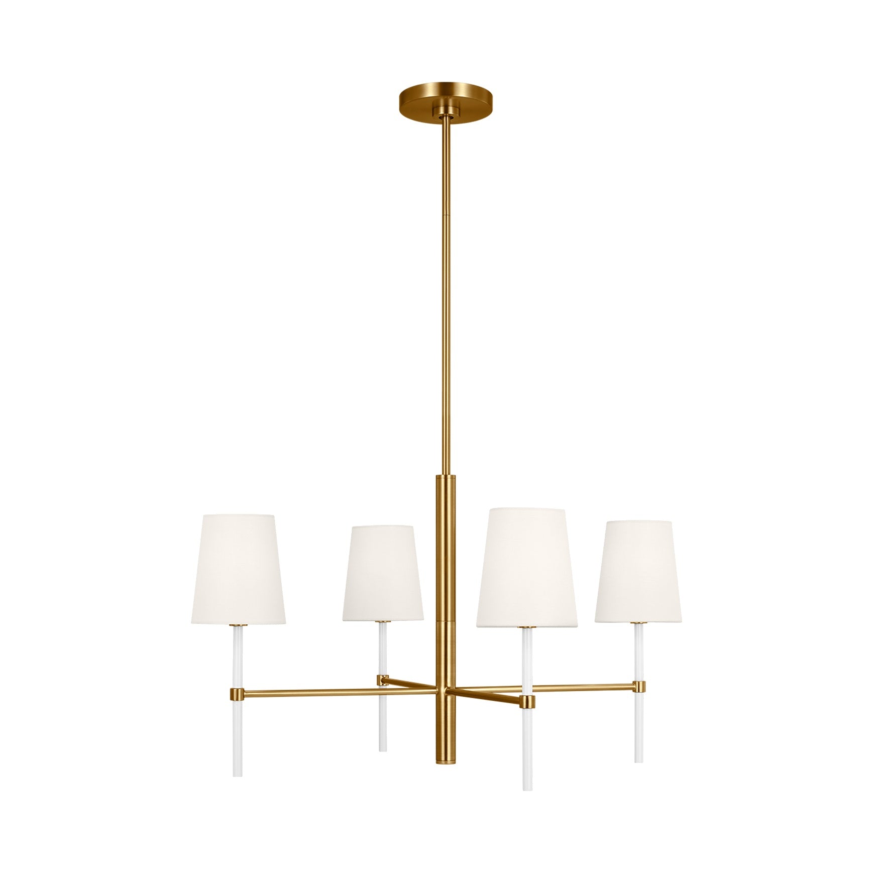 The Monroe Small Chandelier offers a refined, tailored aesthetic that combines painted white enamel with metal, delivering a playful yet elegant statement.