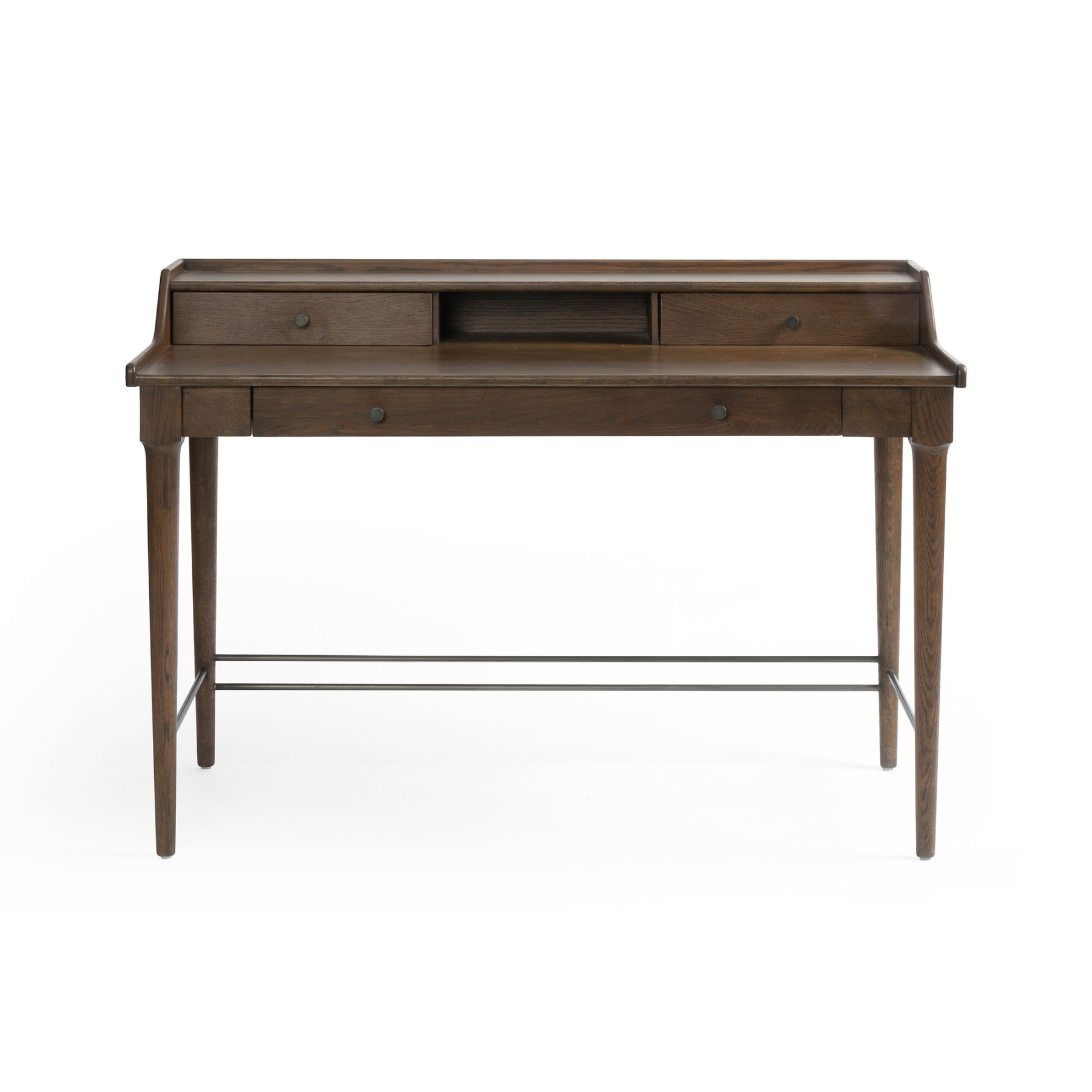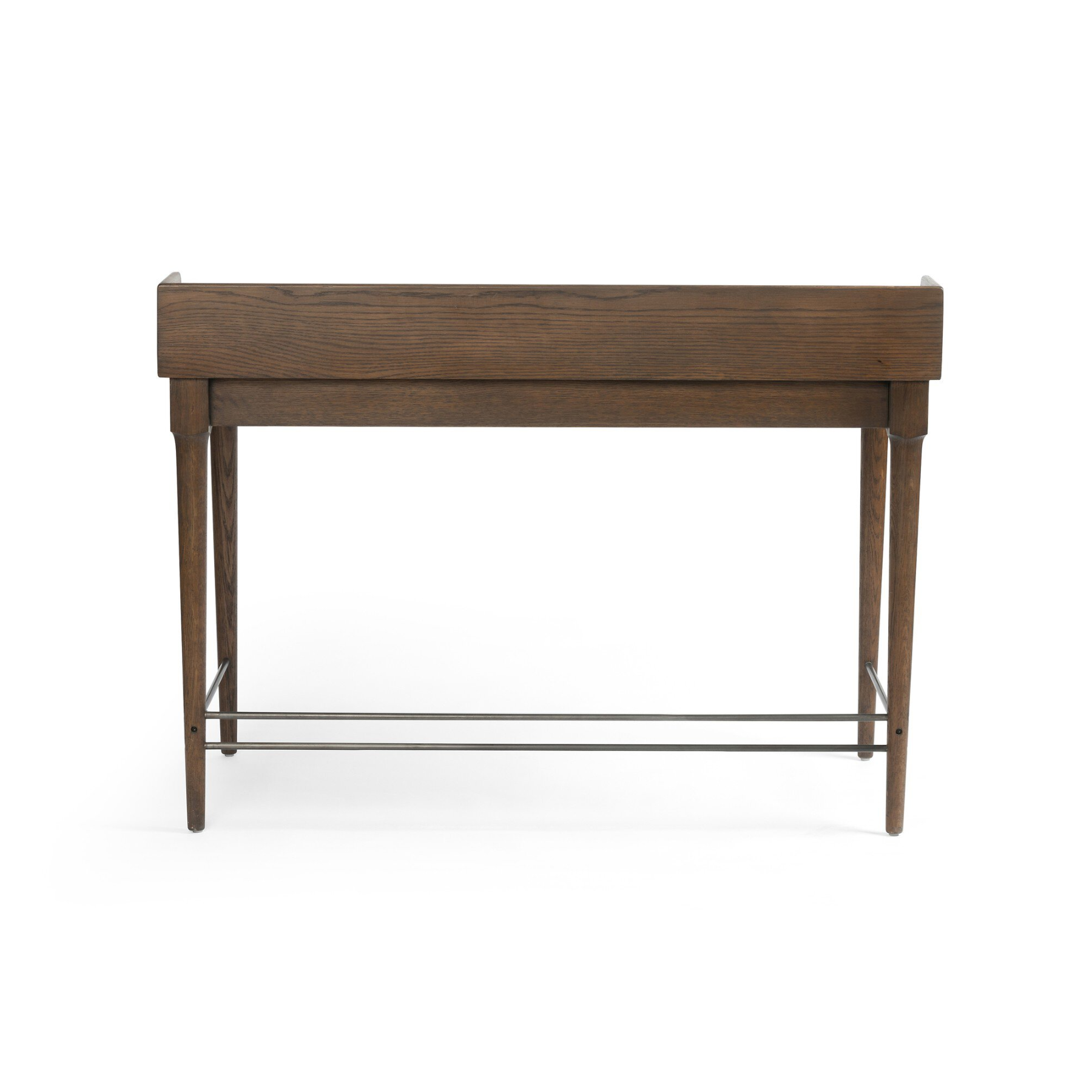 Enhance your workspace with the Moreau Desk. Its sleek, dark-toasted oak finish brings mid-century charm while offering ample storage for a modern office. Crafted for both style and functionality, this writing desk is perfect for any professional setting.