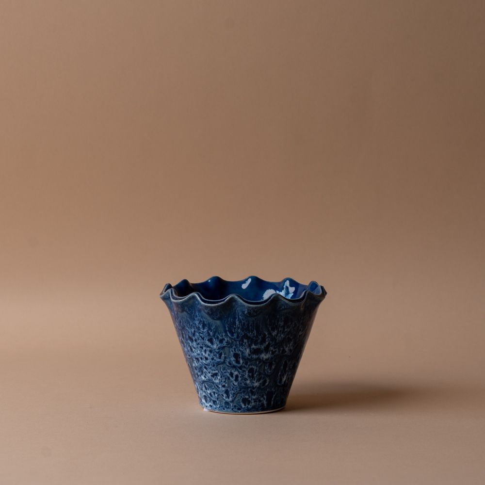 Enhance your space with this Navy Stoneware Planter featuring a pleasant ruffle edge and a rich blue hue. Its elegant design serves beautifully as a styling piece or a vessel for planting flowers, combining form and function with expert craftsmanship. Durable and versatile, it complements any decor while showcasing your greenery in style.