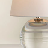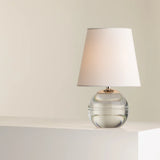 Ridged with ripple-like cuts, the crystal base of the Nicole table lamp makes for an eye-catching accent piece. Topped with a beautiful white linen shade, this pretty portable is rechargeable, adding convenience when styling. With classic Aged Brass-finished hardware, it’s the perfect addition to any bookshelf or small space.