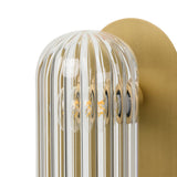 A single elongated glass cylinder balances and floats from a burnished brass frame. Matte glass is specially manufactured to evenly diffuse light. Brass and glass are 98% recyclable. Designed and sustainably crafted in Poland by Schwung.
