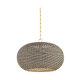 The Penarth family takes a tailored approach to bringing nature indoors. Woven in a unique diagonal pattern, the seagrass string shade creates a dynamic spiraling effect that allows light to seep through. The bottom rim of the fixture is finished in Aged Brass, coordinating with the pendant’s chain. Also available as a flush mount, Penarth provides a warm, inviting aesthetic with its sophisticated shaping and natural materiality.