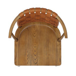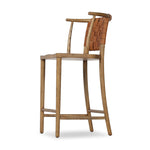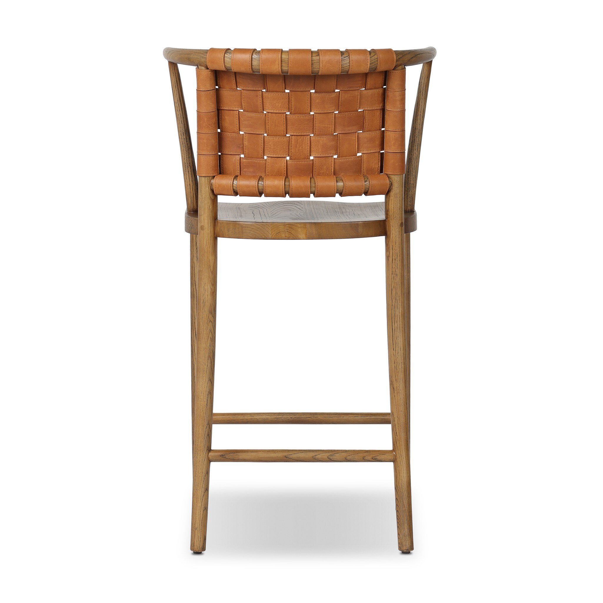 Drawing from classic bistro aesthetics, this counter stool showcases a distinctive barrel-shaped backrest woven in supple leather, elegantly framed by warm toasted nettlewood. The refined silhouette combines timeless design principles with contemporary craftsmanship, making it an ideal accent piece for kitchen islands or bar areas.