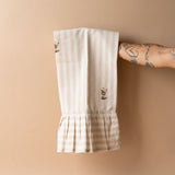 This Pleated Floral Stripe Tea Towel features delicate embroidered floral details paired with a charming stripe ruffle, adding a touch of timeless elegance to your kitchen. Crafted with care, it combines functionality with classic design, making it an essential accessory for everyday use or special occasions.