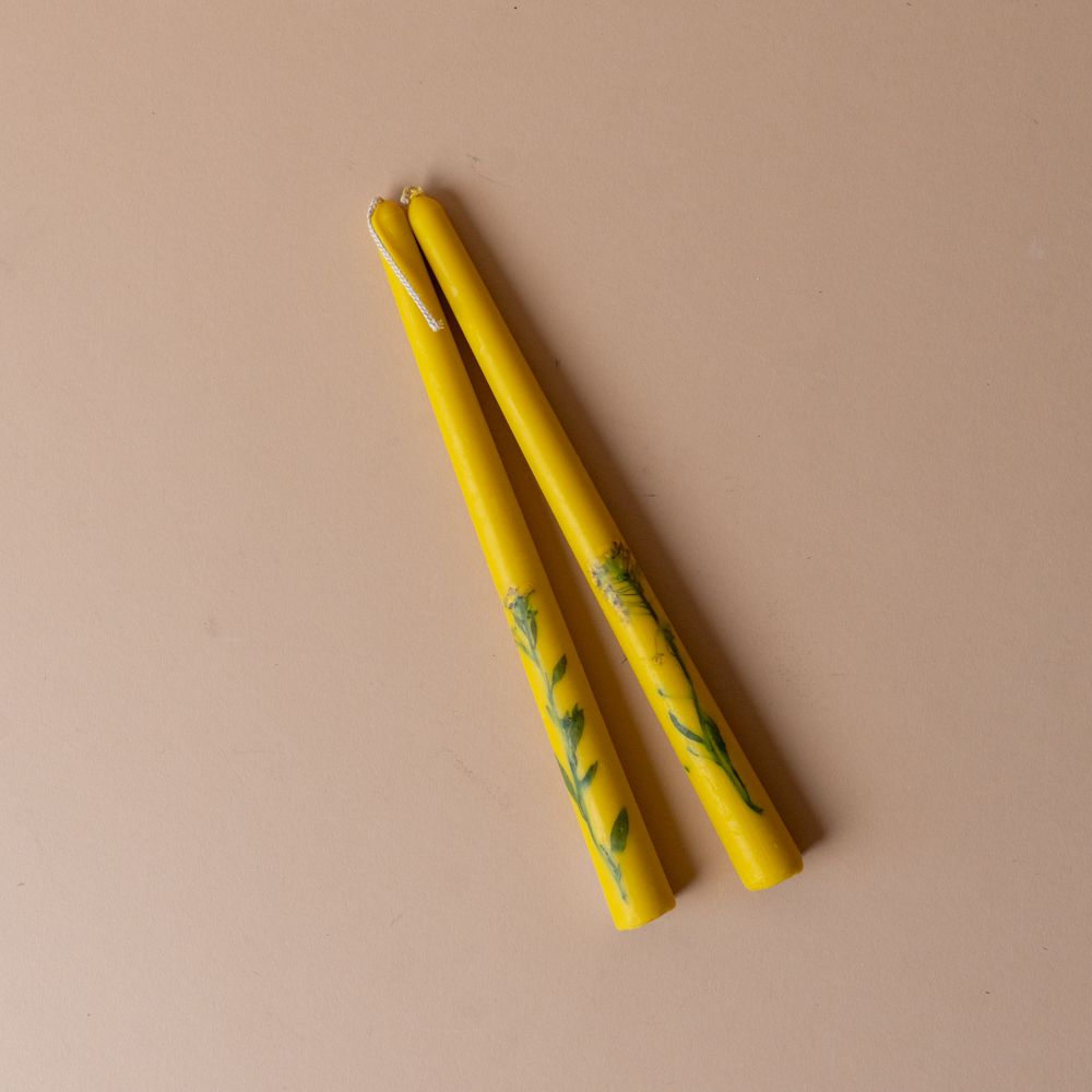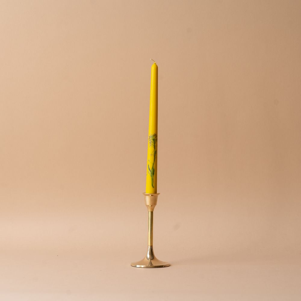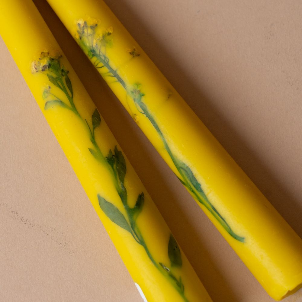 These gorgeous taper candles showcase real dried flowers carefully embedded in smooth wax, adding a natural and elegant touch to any space. Their warm yellow hue and delicate floral accents brighten rooms while providing a sophisticated ambiance. Ideal for enhancing décor with subtle botanical charm, these candles combine artistry and nature in a refined design.