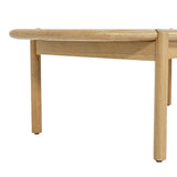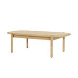 This coffee table features soft curves and the warm hues of light oak, introducing a refined architectural touch to any living space. Crafted from solid oak, it highlights a rich wood grain and gently rounded edges, offering a sophisticated and inviting appearance. Its low silhouette pairs seamlessly with modern lounge furniture, merging minimalist design with expert craftsmanship.