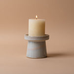 The Reactive Glaze Pillar Candle Holder features a natural, textured finish that enhances any space with understated elegance. Its unique glaze creates depth and variation, adding a tactile quality that complements the warm glow of candlelight.