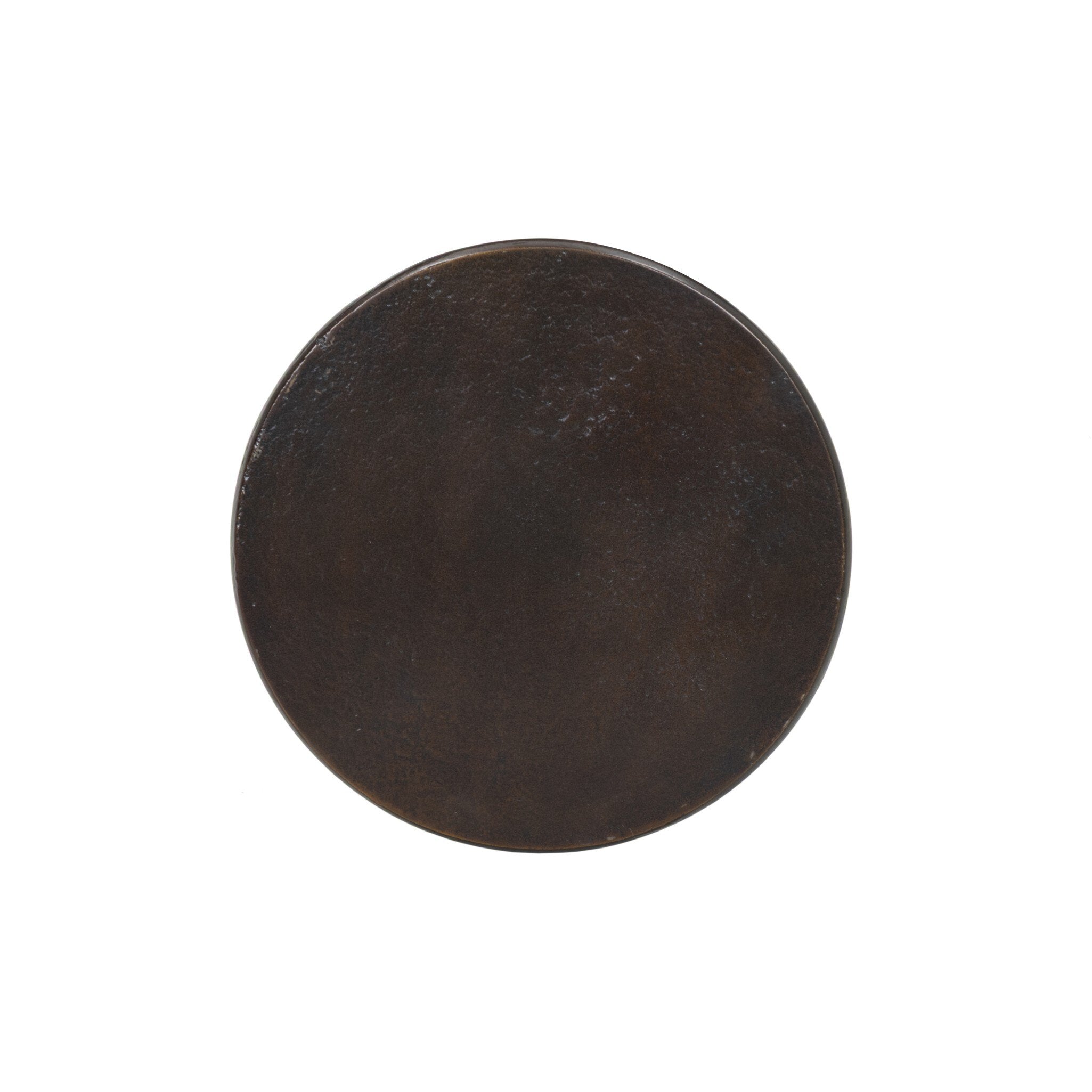 This sophisticated end table showcases a distinctive X-frame silhouette crafted from aluminum and finished in a weathered bronze patina. Its compact proportions make it an ideal accent piece for displaying beverages, books, or decorative objects beside your sofa or bed.