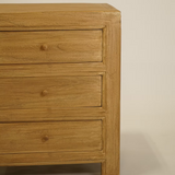Constructed from reclaimed wood, the Ronan Nightstand features four dovetailed drawers set within its distressed frame, enhancing its classic design. This piece brings a touch of natural elegance to any space, making it a refined and enduring choice for your home.